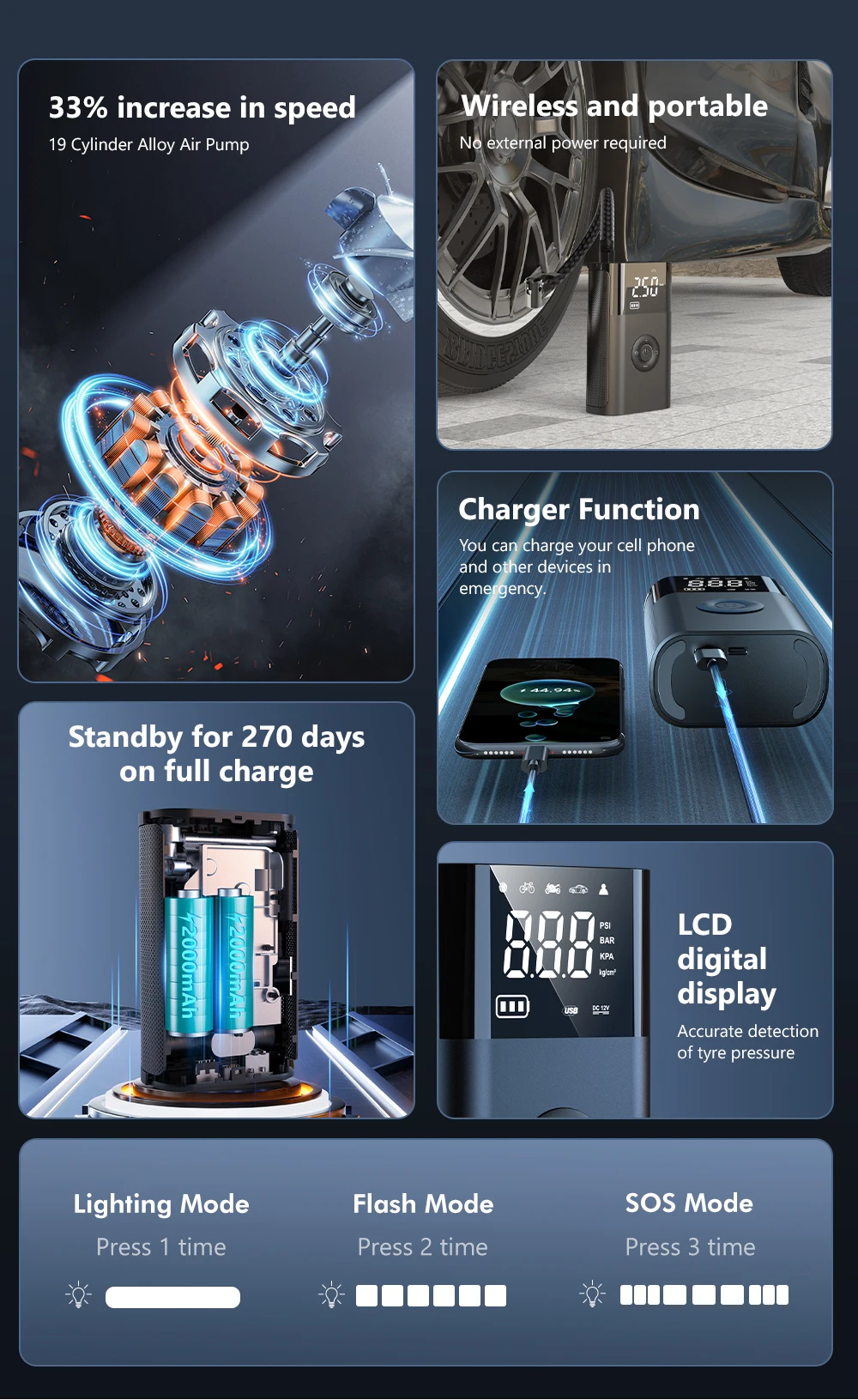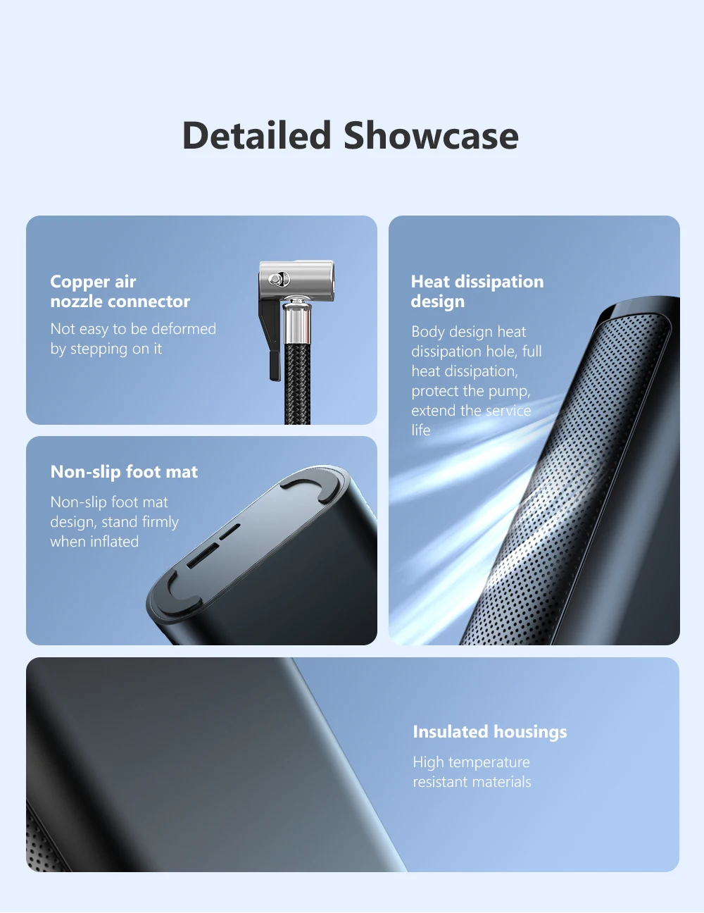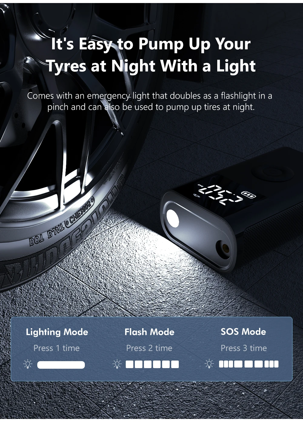 • Portable and Compact :The Mini Air Compressor is small and lightweight, making it easy to carry around and use on-the-go.