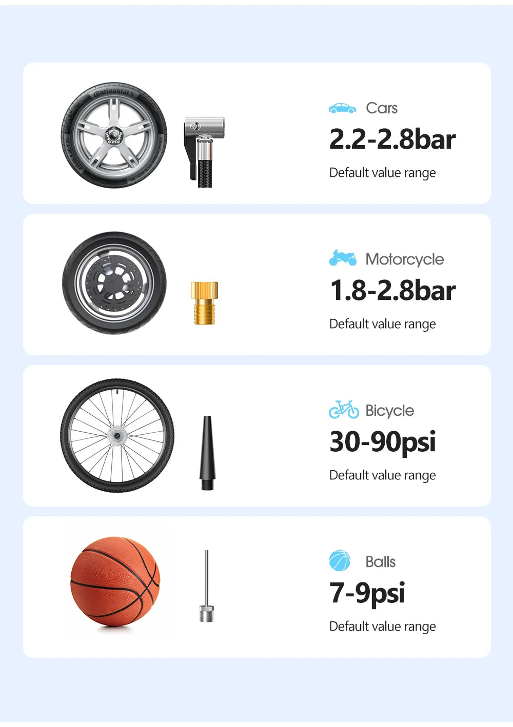 • Versatile :This air compressor is suitable for use with motorcycles, bicycles, and cars, making it a versatile tool for any vehicle owner.
